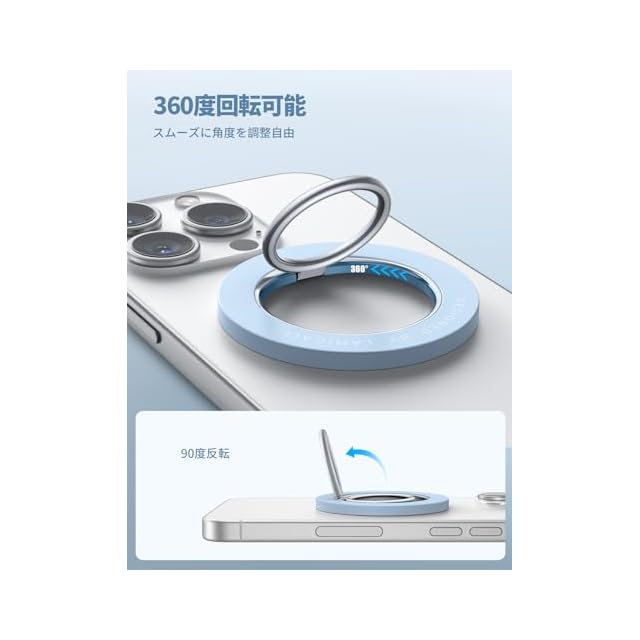 商品名:Lamicall MagSafe対応 360度回転式 スマホリング : マグセーフ リング マグネット式 携帯電話 ホルダー リング 角度調整 スタンド 磁気増強 メタルリング付き 取り外し iPhone 2024 iPhone 16 16 Plus 16 pro 16 pro max 16e iphone 15/14/13 Android に対応 ブルー
