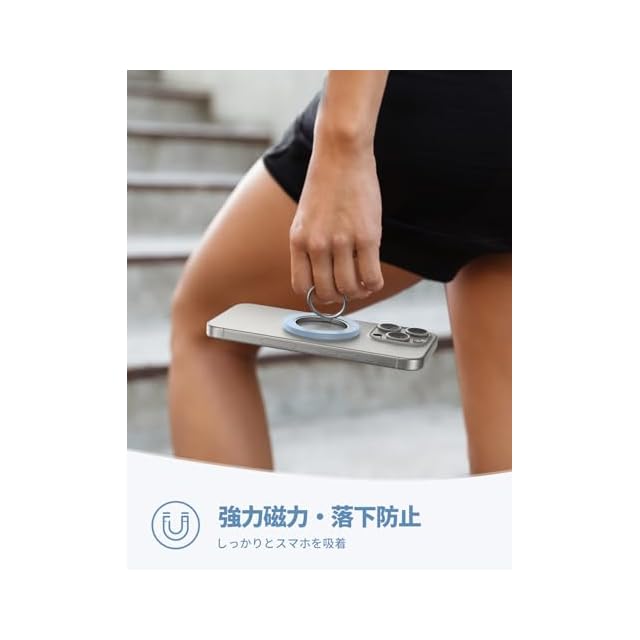 【強力磁力でしっかりと吸着】約1000gまでの荷重に耐える強力磁力です。iPhone 16/15/14/13シリーズをしっかりと吸着できます。マグネット式スマホリングで、iPhone MagSafe シリーズ本体やMagSafe搭載ケースに簡単に装着できます。また、マグネットなので跡を残さず取り外し可能です。テープ跡や糊残りを気にせずお使いのスマホをきれいな状態でご利用いただけます。