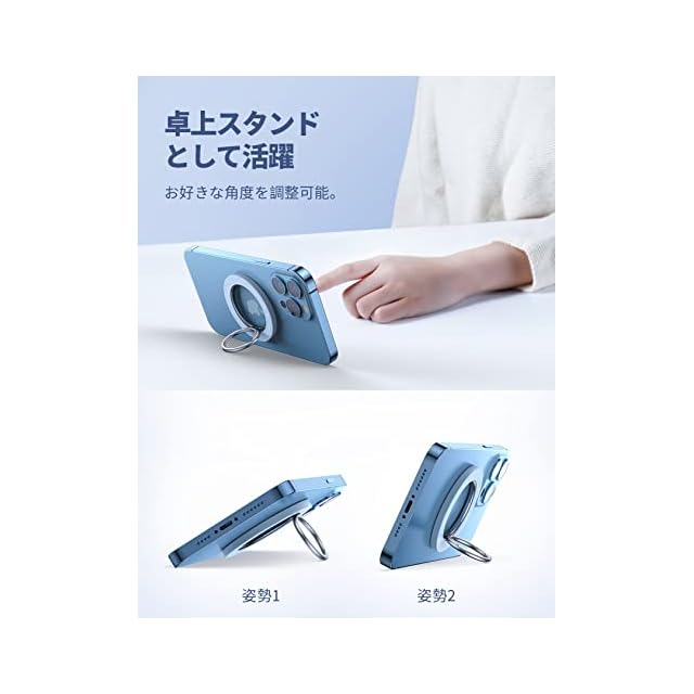 Lamicall MagSafe対応 360度回転式 スマホリング : マグセーフ リング マグネット式 携帯電話 ホルダー リング 角度調整 スタンド 磁気増強 メタルリング付き 取り外し iPhone 2024 iPhone 16 16 Plus 16 pro 16 pro max 16e iphone 15/14/13 Android に対応 ブルー