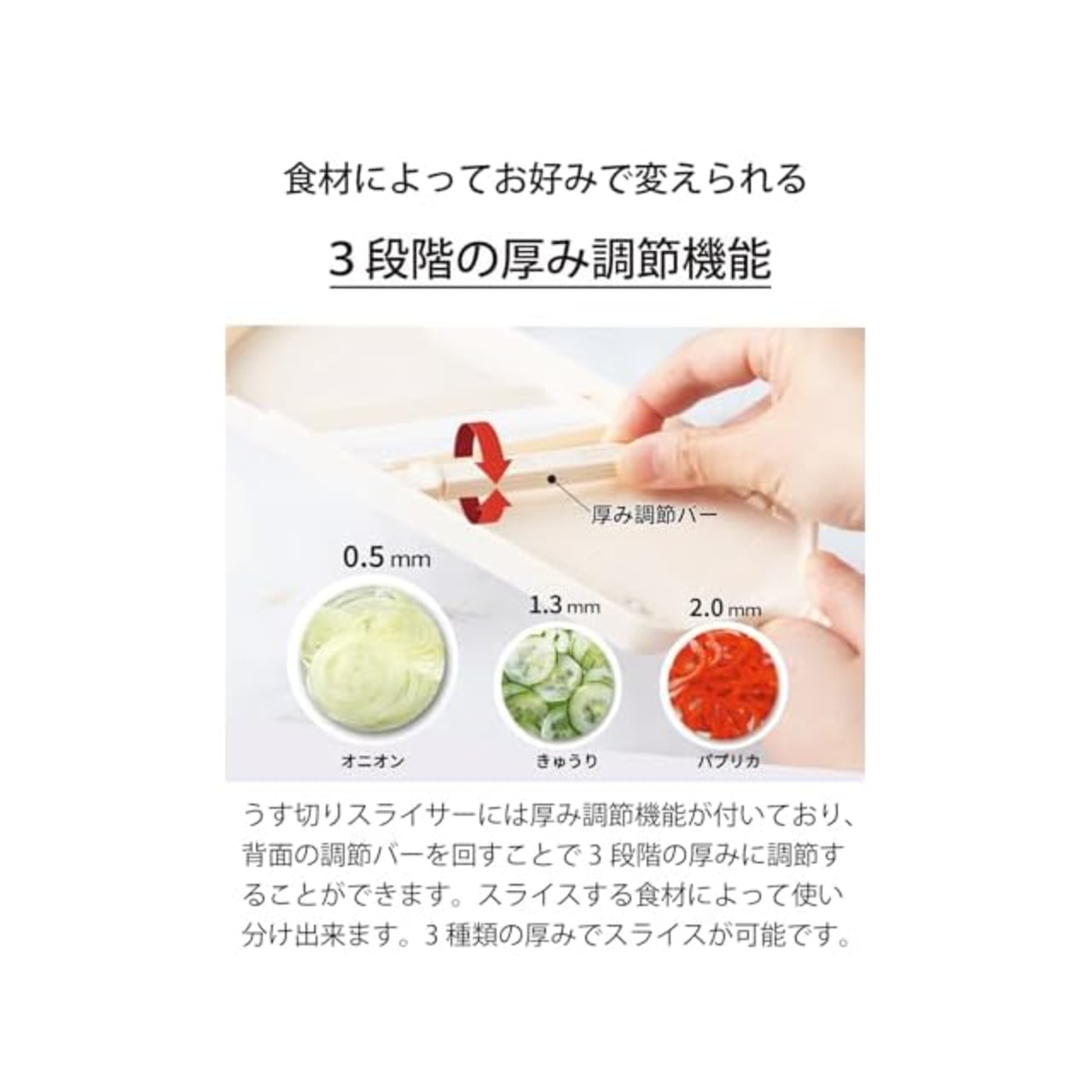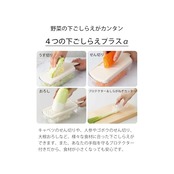 【便利な機能をひとまとめ】ラバーグリップで握りやすい。セラミック刃だから「軽く、素早く、キレイに切れる」スライサー。薄切り(可変式)・せん切り・おろしプレート・プロテクター(しらがねぎカッター付き)・受け容器(すべり止め付き)が1つに収納