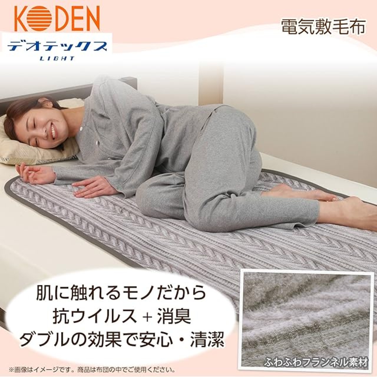 商品名:広電(KODEN) 電気毛布 敷き 140×80cm グレイ フランネル 洗える 消臭機能 デオテックスライト 抗ウイルス加工 スライド温度調節 CWA555H-HVAD