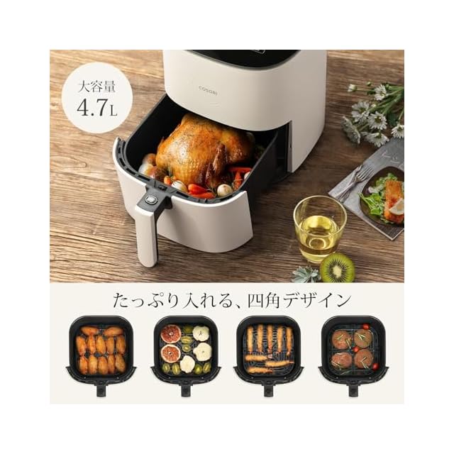 COSORI コソリ ノンフライヤー 4.7L 大容量 家庭用 電気 エアフライヤー 最高温230℃ 揚げ物 ポテト 惣菜 日本語レシピ付き タイマー 自動電源オフ PSE認証済み アイボリー CAF-L501-WJP