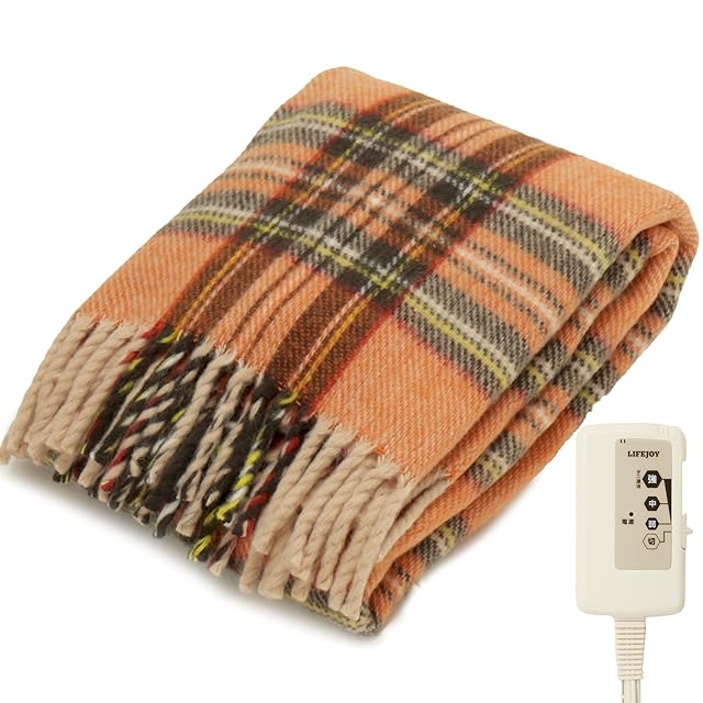 ライフジョイ 電気ひざ掛け 日本製 オレンジ チェック柄 120cm×62cm 電気毛布 洗える ブランケット ふわふわ あったか JPN121DC