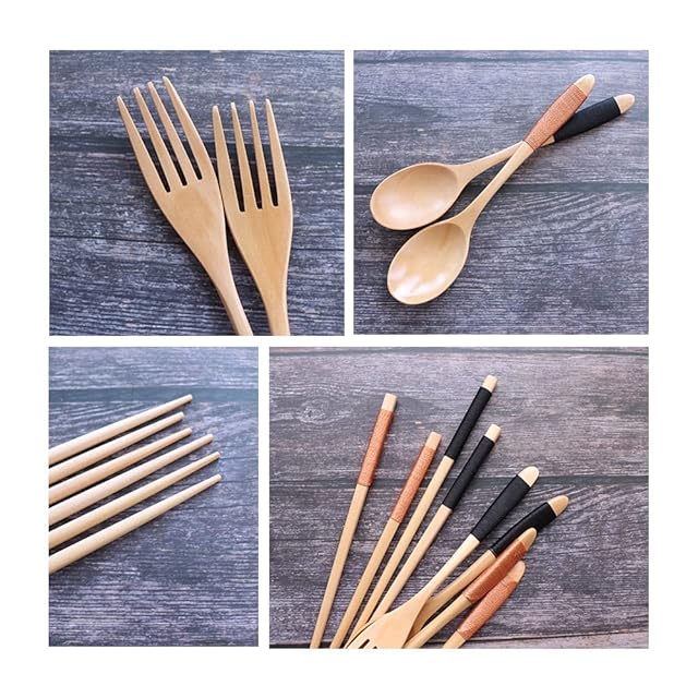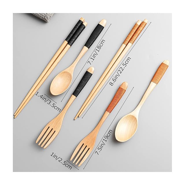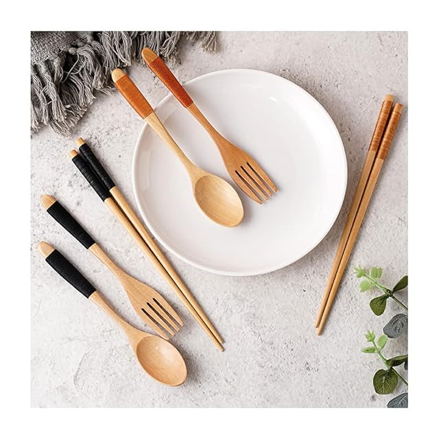 ★【軽量木製スプーン箸フォーク セット]】天然木製、割れにくい、コンパクトのサイズなので、お子様からご年配の方まで気軽にしてご利用頂けます。軽量でかさばらないので、持ち運びやすい、仕事やアウトドアにおすすめです。