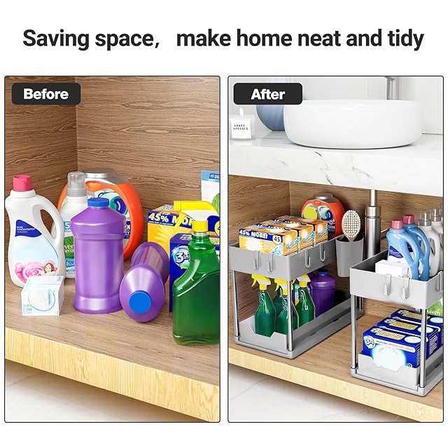 ✅ 2段シンク下オーガナイザーは、キッチン、バスルームのシンク、パントリー、洗濯室、オフィス、寝室など、あらゆる場所にフィットします。収納スペースを最大限に活用しながら、ご自宅を整理整頓できます。