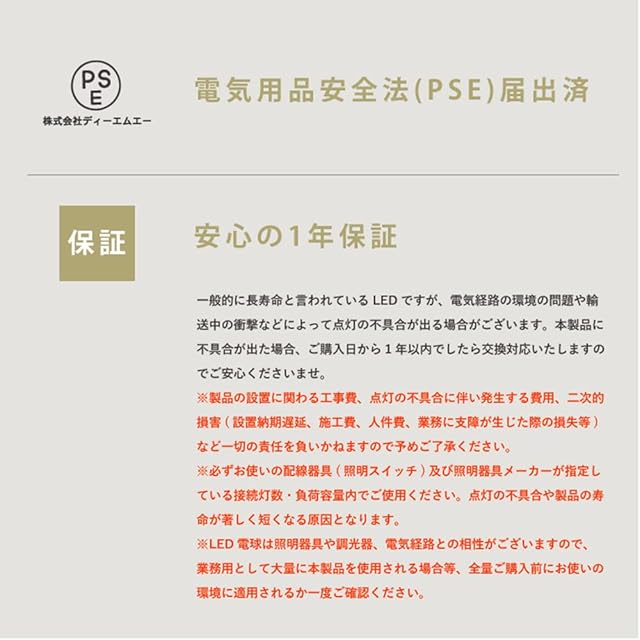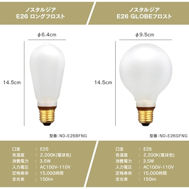 【仕様】口径:E26/電球の種類:LED電球/色温度:2200K/全光束:150lm(一般電球15W相当/暗めの電球です。)/定格消費電力:3.5W/定格電圧:AC100~110V 50/60HZ/定格寿命:15,000時間
