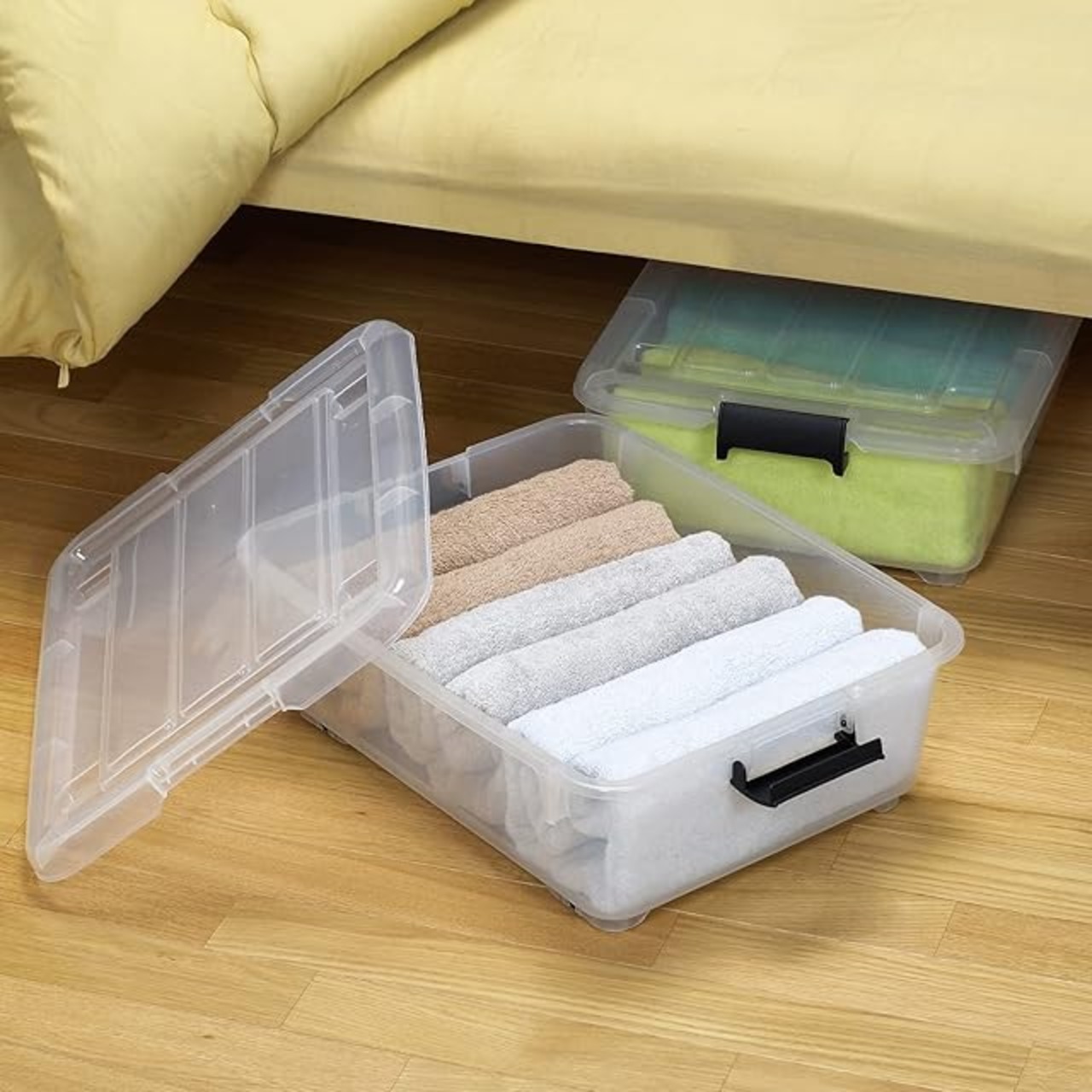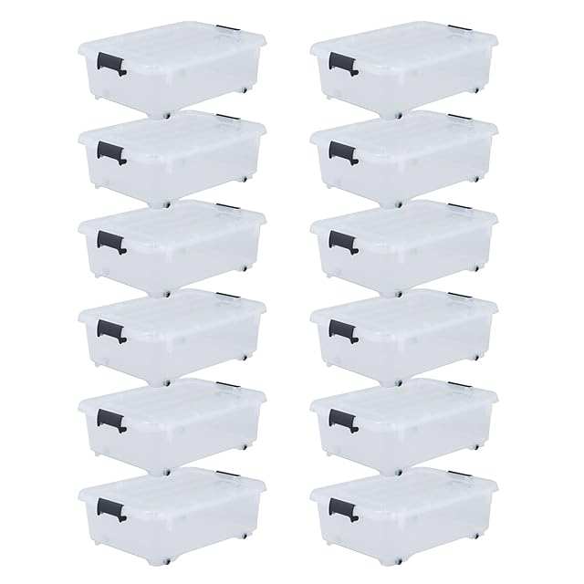 JEJアステージ(JEJ Astage) 収納ボックス 衣類収納 コロモ浅型 奥行50cmタイプ クリア フタ・コロ付き 日本製 クローゼット 押入れ 日本製 幅38×奥行50×高さ17cm 12個セット