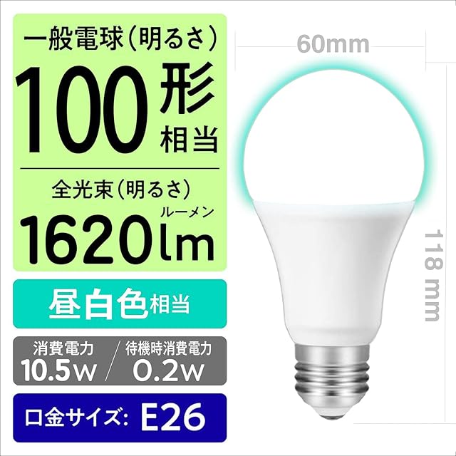 商品名:人感センサー LED 電球 E26口金 100形 昼白色相当 10.5W. 消灯お知らせ機能搭載、自動点灯、消灯、消し忘れ防止、高輝度、省エネ、長寿命
