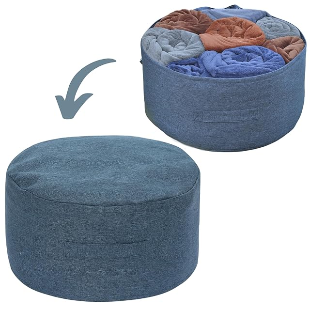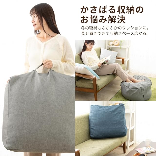 【布団以外も収納できる!】布団収納袋は掛け布団以外も収納可能。かさむ毛布や敷きパッド、厚手のパジャマ等をすっきり収納し、クッションや座布団として使えます。インテリアとしても大活躍する収納ケースです。【入れる物で感触をカスタマイズ!】布団収納袋は、何を収納するかで違う感触を楽しめるクッションです。布団収納袋の片側に羽毛の掛け布団、片側に衣類や毛布を入れれば、1つのクッションで使い心地を変えることも可能。