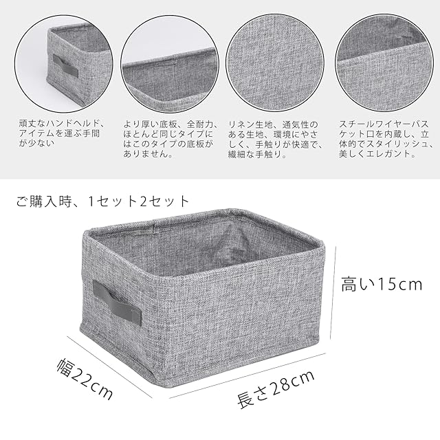 【シナリオマッチング】収納ボックスは、寝室、居間、書斎、収納室、オフィスなど、さまざまなシーンで使用されています。 サイズは2種類あり、収納ボックスのサイズと数量は以下のように選択します。 製品の色は新鮮で、さまざまな装飾スタイルに合わせることができます。 素材は環境にやさしく、洋服やおもちゃの収納に適しています。収納ボックスは大容量で、さまざまな洋服やおもちゃ、本を収納できます。また、収納ボックスにはPPボードが内蔵されています。しっかりしていて、何度も洗うことができ、変形しにくいです。