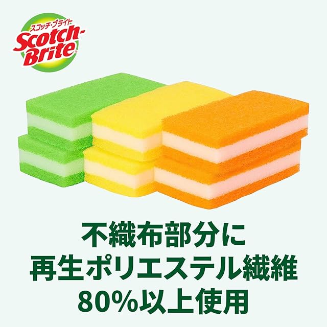 【.co.jp限定】 3M スコッチブライト キッチン カラー スポンジ 食器洗い キッチンスポンジ 食器用スポンジ 台所 ロング 6個