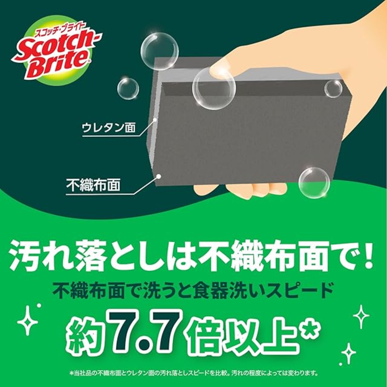 【不織布面でも優しく洗えるキッチンスポンジ】デリケートな食器、茶碗、フッ素加工の調理器具などをキズつけずにスッキリ洗えます。