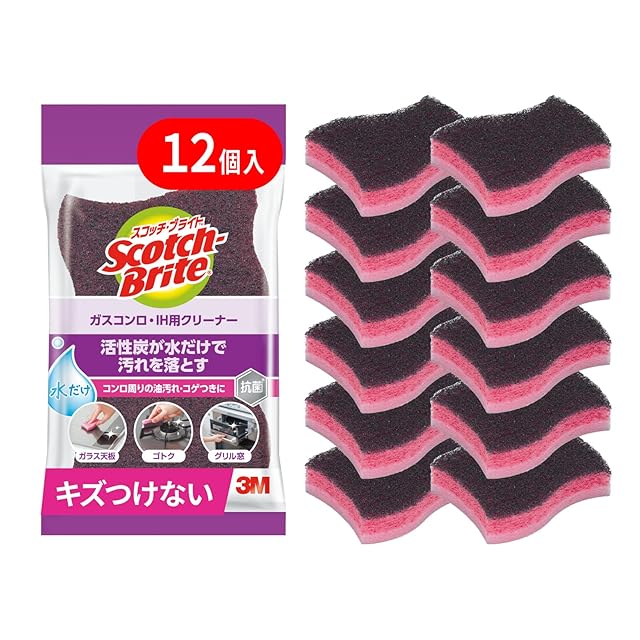 【.co.jp限定】3M スポンジ ガスコンロ IH 油汚れ 掃除 クリーナー 12個 スコッチブライト GH-4K 3P A