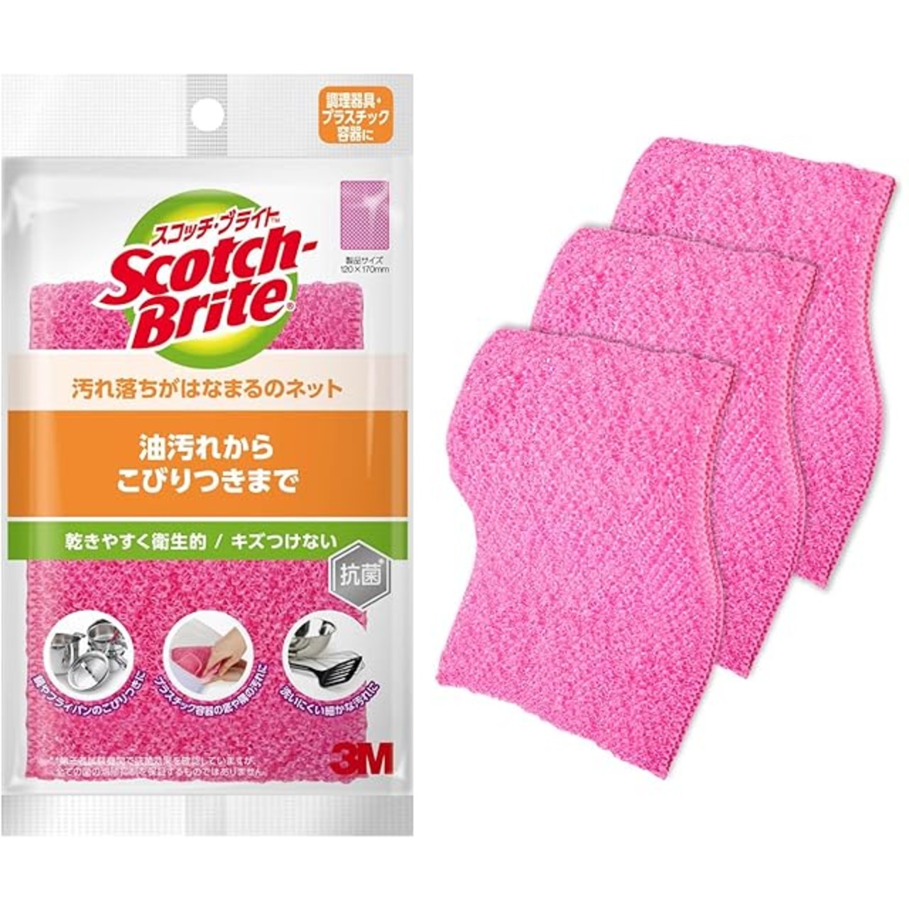 【.co.jp限定】3M キッチン スポンジ 汚れ落ちがはなまるのネット ピンク スコッチブライト YHNT-01K 3P A