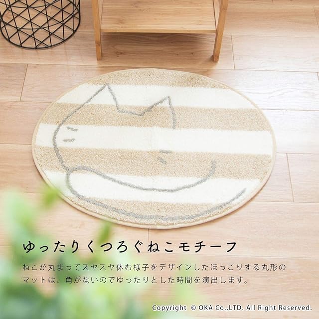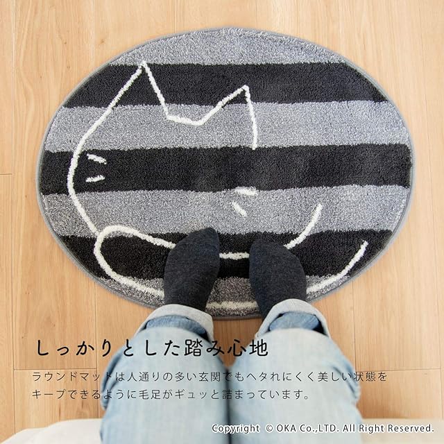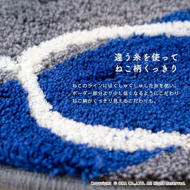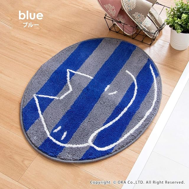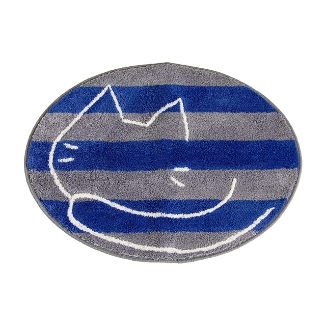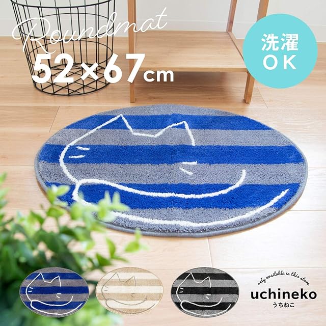オカ(OKA) うちねこ 洗えるラウンドマット 約52cm×67cm ブルー (丸 円形 マルチマット)