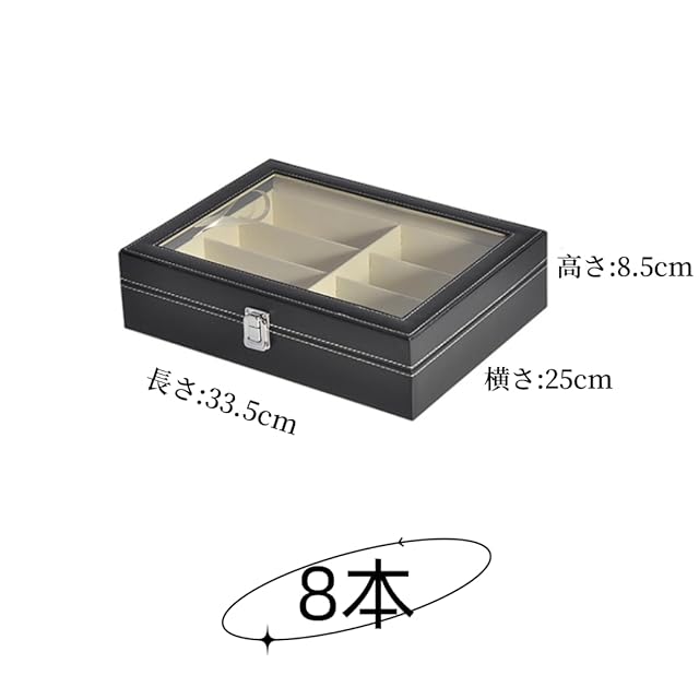 【サイズ】 8本メガネ収納ボックスの本体サイズ:約高さ8.5㎝*横さ25㎝*長さ33.5cm 12本メガネ収納ボックスの本体サイズ:約高さ15.5㎝*横さ19.5㎝*長さ33.5cm 18本メガネ収納ボックスの本体サイズ:約高さ22.5㎝*横さ19.5㎝*長さ33.5cm