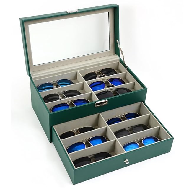 Gardenlightess メガネ サングラス 収納ケース ボックス コレクションケース ((ダークグリーン)12本)