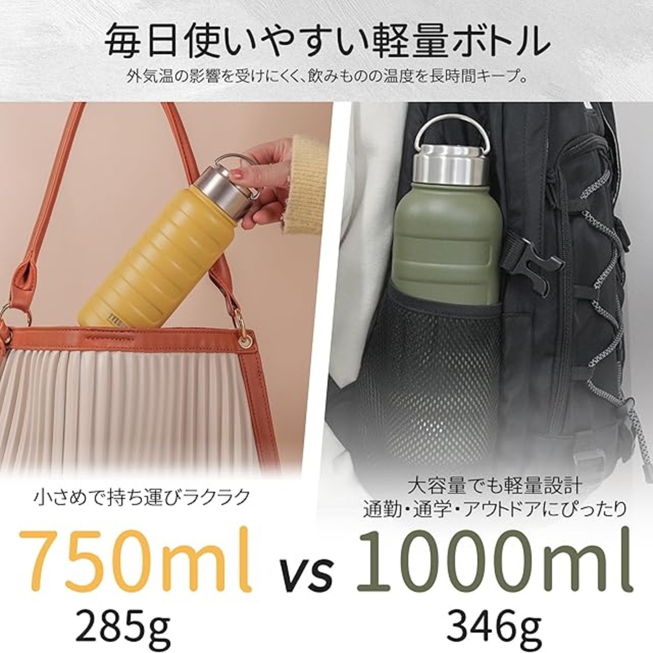 商品名:TYESO 水筒 魔法瓶 マグボトル 真空 断熱 スポーツボトル 直飲み ステンレス 2重構造 広口 ハンドル付 大人 子供 0.75 / 1リットル (1000ml, グリーン)