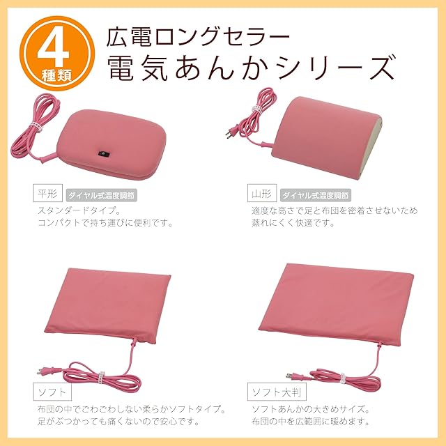 商品名:広電(KODEN) 電気あんか 平形 16cm×23cm×5cm ピンク 無地 温度調節 省エネ コンパクト VWH602H-P