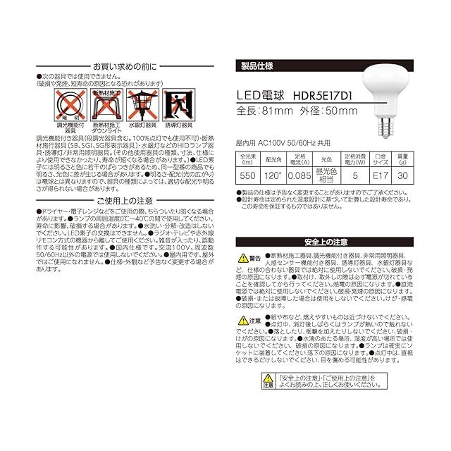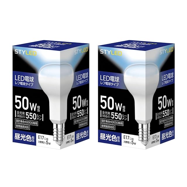 商品名:スタイルド LED電球 2個セット E17 昼光色 50W相当 550lm レフ電球形 密閉器具対応 HDR5E17D2