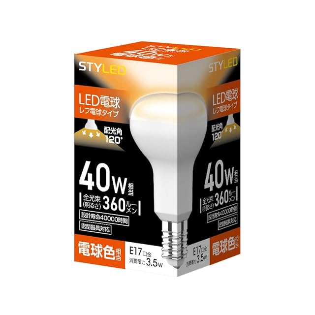 商品名:スタイルド(STYLED) LED電球 E17 電球色 40W形相当 レフ電球形 密閉器具対応 HDR3E17L1