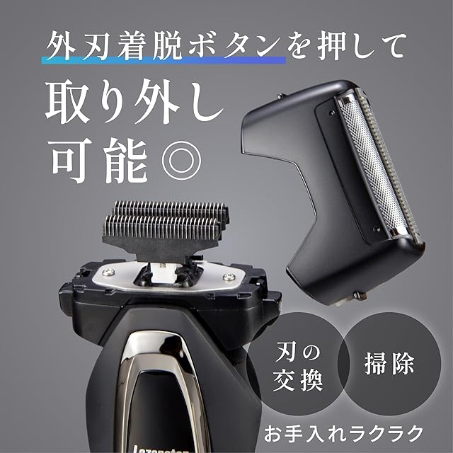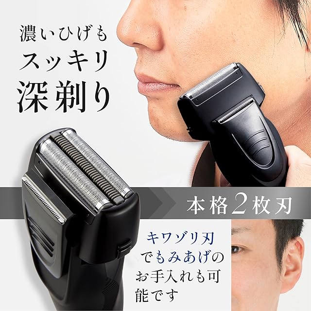 【しっかり・スッキリ深剃り】本格2枚刃で、濃いヒゲもスッキリ深剃りできます。キワゾリ刃でもみあげのお手入れも可能です。外刃着脱ボタンが付いているので、刃の交換・掃除に便利です。