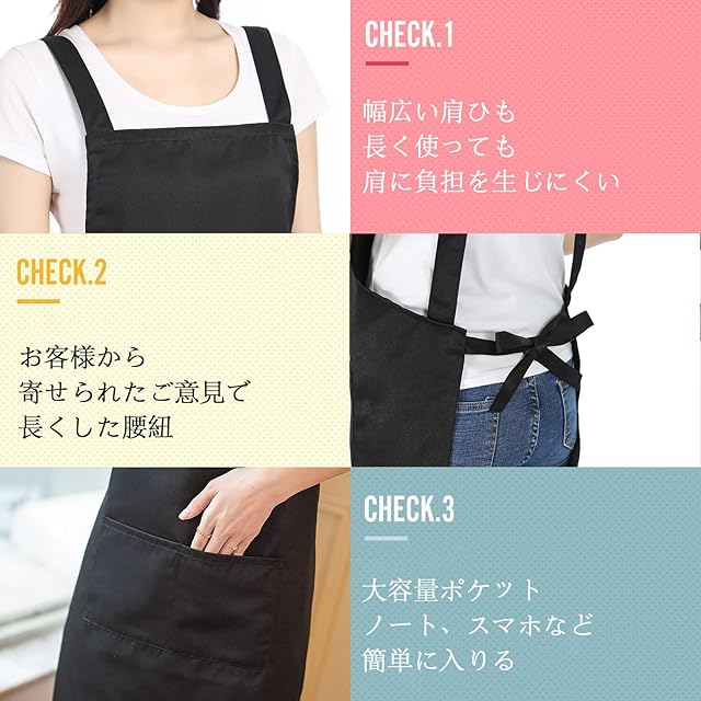 【幅広い使用シーン】キッチン、ガーデニング、料理教室、ご家庭、カフェ、雑貨店、飲食店、DIYなど、幅広いシーンでご使用いただけます。飲食店のユニフォームとしてはもちろん、幼稚園や保育園の保育士、学校行事、絵画や陶芸など、多くの方におすすめです。