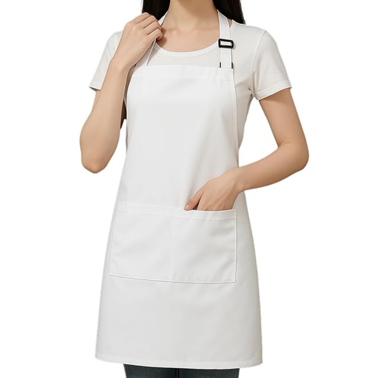 [cozycube] エプロン H型 首掛け シンプル 女性用 男性用 メンズ レデイース カフェエプロン 無地 おしゃれ 大容量ポケット 汚れにくい シワ防止 男女兼用 ノーアイロン 透けない ポケット付き 料理教室用 (ホワイト(首掛けタイプ))