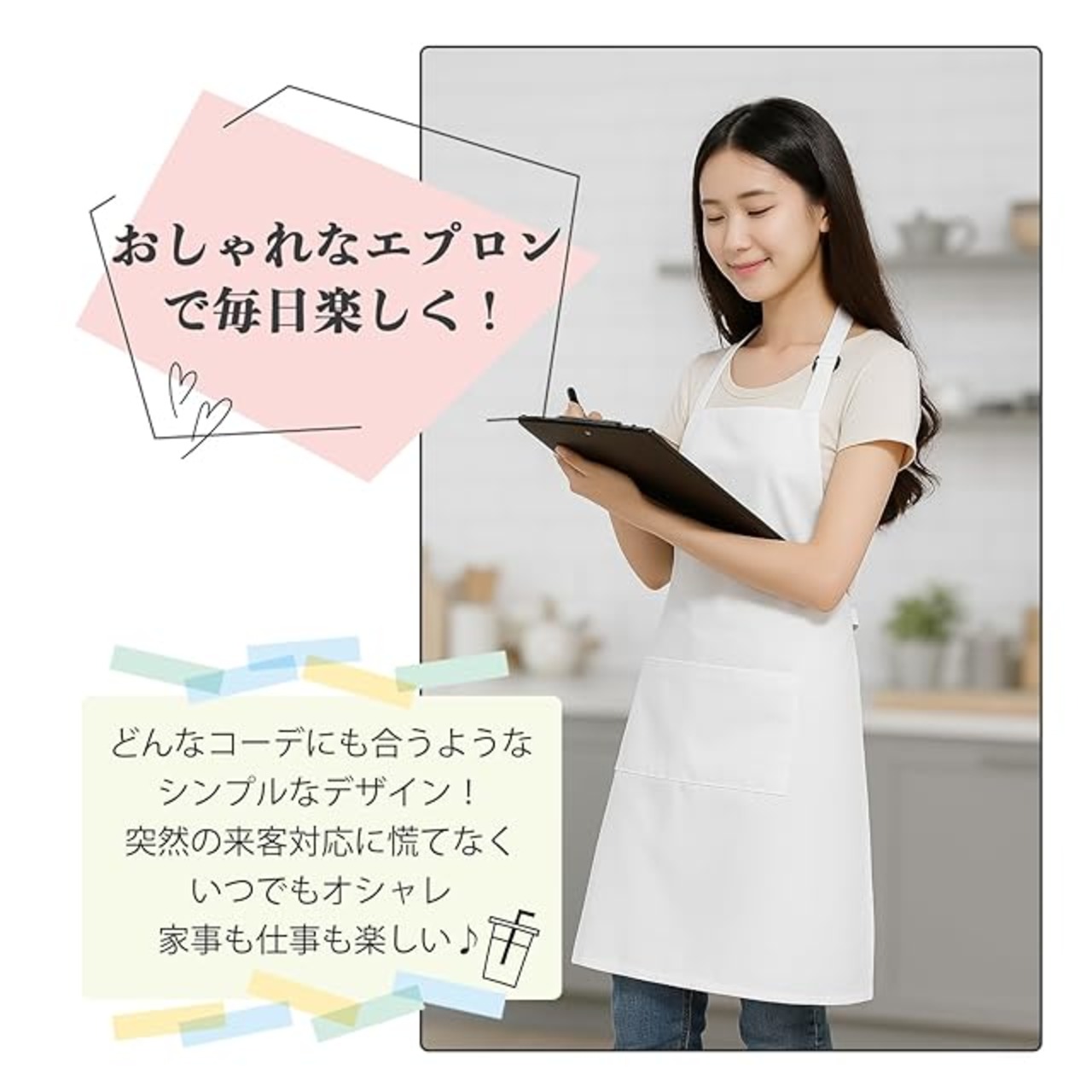 【幅広い使用シーン】キッチン、ガーデニング、料理教室、ご家庭、カフェ、雑貨店、飲食店、DIYなど、幅広いシーンでご使用いただけます。飲食店のユニフォームとしてはもちろん、幼稚園や保育園の保育士、学校行事、絵画や陶芸など、多くの方におすすめです。
