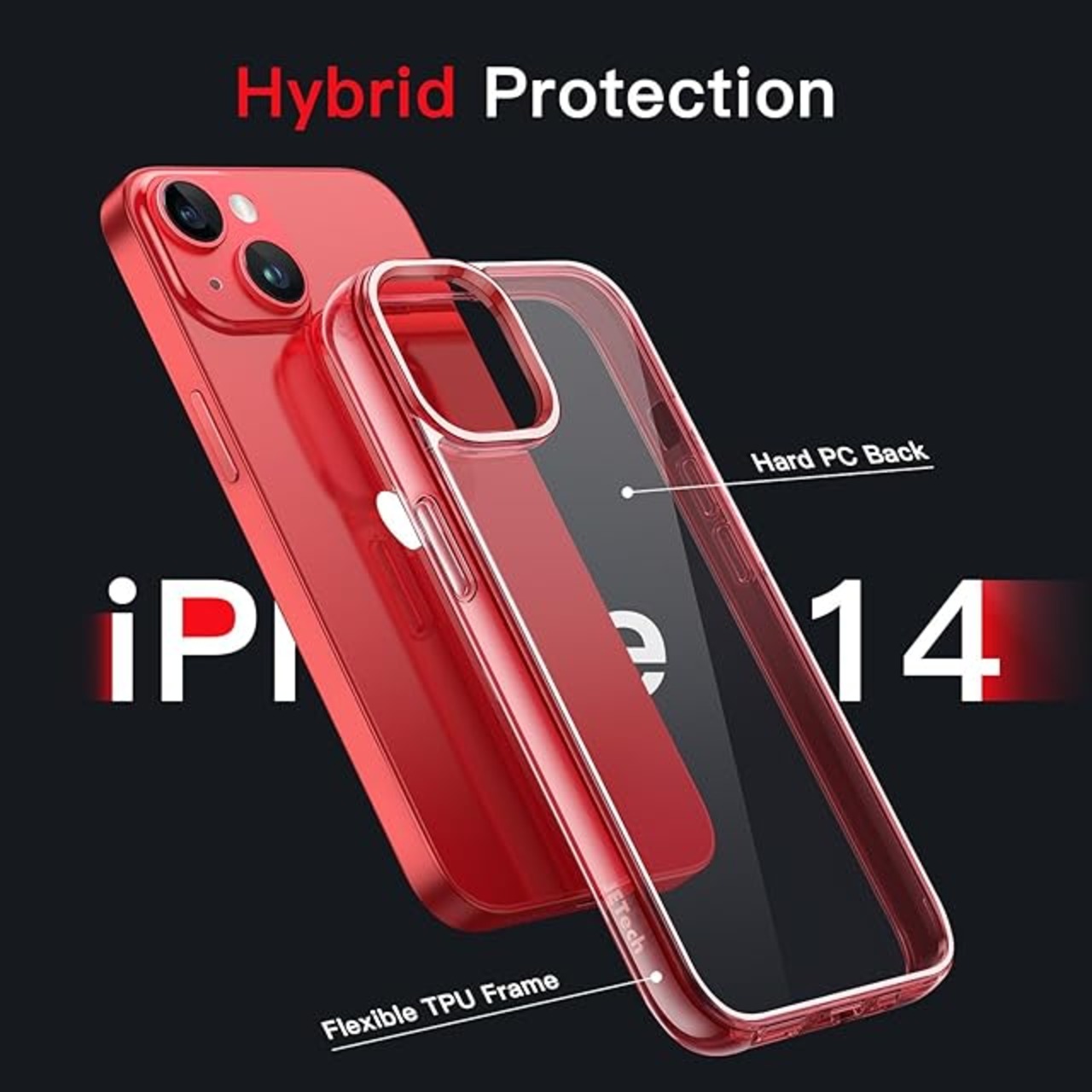 JETech iPhone 14 6.1インチ用 保護ケース 黄ばみなし 衝撃吸収 バンパーカバー 傷つけ防止 クリアバック (レッド)
