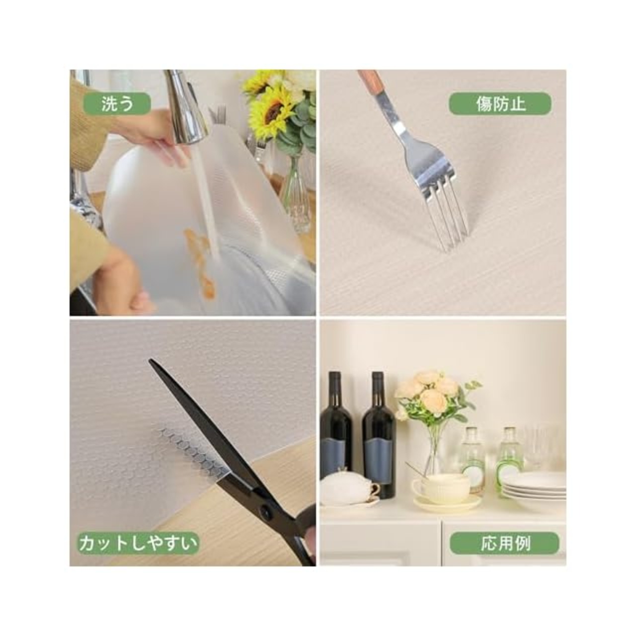 [滑り止め・非粘着性] 両面とも非粘着性の素材なので、ライナーを簡単に取り出して掃除することができます。 食器棚シートは、虫、油、汚れと台所用品の滑りを防ぎ、カビの発生を有効に予防できます。台所用品や本やなどの品物の保護に役立たちます。