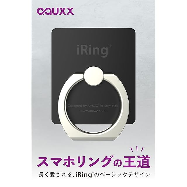 【この商品について】 スマホリングの王様「iRing Hook」は、スマートフォンの利便性を最大限に引き出すのに欠かせないアイテムです。手にしっかりフィットするスリムなデザインで、毎日のスマホ操作をより快適に、そして安全にサポートします。 【快適なホールド感と落下防止】指を通すだけでスマートフォンを安定してホールド。片手での操作範囲が広がり、落下のリスクを軽減できるため、安心してご使用いただけます。 【自由自在なスマホスタンド機能】リングを立てることで、縦置き・横置きに対応する便利なスマホスタンドに早変わりします。360°回転と180°スイング機能を備えているため、動画視聴やビデオ通話など、シーンに合わせてお好みの角度でハンズフリーに楽しめます。 【スリム&洗練されたデザイン】本体の薄さは約2mm、リングを含めても約6.2mmという超薄型設計です。スマートフォンの外観を損なわず、ポケットやカバンにもスムーズに収まります。洗練されたマット調の仕上がりは、かっこよさだけでなく、どことなく可愛らしい雰囲気も持ち合わせているため、女性にも人気です。 【豊富なカラーバリエーション】 定番カラーからトレンドカラーまで、幅広いラインナップをご用意しています。スタイリッシュなマットブラックやホワイトはもちろん、スマートフォンやケースのカラーに合わせて選べるレッド、ブルー、グレイなど、きっとあなたのお気に入りが見つかります。 さらに、「Limited Edition」の別注カラーも展開中。特別なデザインをお探しの方は、ぜひご確認ください。 【便利なフック付属】付属の吊り下げフックを使えば、iRingを装着したスマートフォンを簡単に掛けることができます。車載ホルダーとしてだけでなく、キッチンやデスクなど、様々な場所で平面に装着して活用できます。 【繰り返し使える高吸着ジェルシール】強力なジェルシールを採用しており、お使いのスマートフォンケースの上からでも簡単に取り付けられます。吸着力が弱まっても水洗いで繰り返し使用できるので、長くご愛用いただけます。 【製品と正規代理店について】 本製品は、韓国メーカーAAUXX社が生産する正規品です。株式会社シンシアは、iRingシリーズの日本正規代理店として、お客様に安心と信頼の製品を提供しています。製品に関するご質問や、万が一の不具合の際も、充実したサポート体制を整えておりますので、どうぞご安心ください。 【製品仕様】本体サイズ: 約40mm(H) × 約35mm(W) | 薄さ: 約2mm | リング含む薄さ: 約6.2mm | リング内径: 約19mm(H) × 約22.5mm(W) | 重量: 約12g | フックサイズ: 約20mm(H) × 約7.8mm(W) | 重量: 約3g | 耐荷重: 約6kg 【注意事項】 現行の粘着テープは2023年9月以降にデザインおよび仕様が変更されましたが、素材に変化はございませんのでご安心ください。粘着テープは貼付面の素材との相性によっては剥がれる場合があります。また、貼付後すぐに使用すると粘着が不十分で剥がれてしまう可能性がございますので、十分に粘着させてからご使用ください。リングの硬さには個体差があり、お客様の感覚による硬さの違いでの交換は承りかねます。ただし、リングが自重で動いてしまう、または開封時から塗装剥がれが見られるなど、明らかな初期不良の場合は交換対応いたしますのでご安心ください。