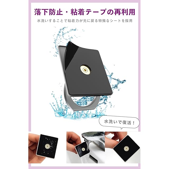 【繰り返し使える高吸着ジェルシール】強力なジェルシールを採用しており、お使いのスマートフォンケースの上からでも簡単に取り付けられます。吸着力が弱まっても水洗いで繰り返し使用できるので、長くご愛用いただけます。