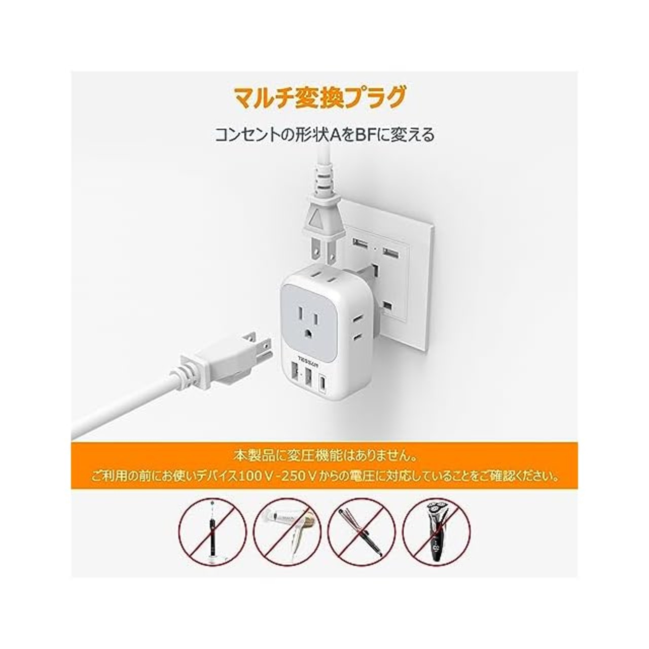 商品名:変換プラグ bfタイプ TESSAN 海外用 コンセント 変換 bfタイプ Type-Cポート付き 変換プラグ bf イギリス/シンガポール/香港/マレーシア/マカオなどの地域に対応