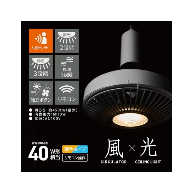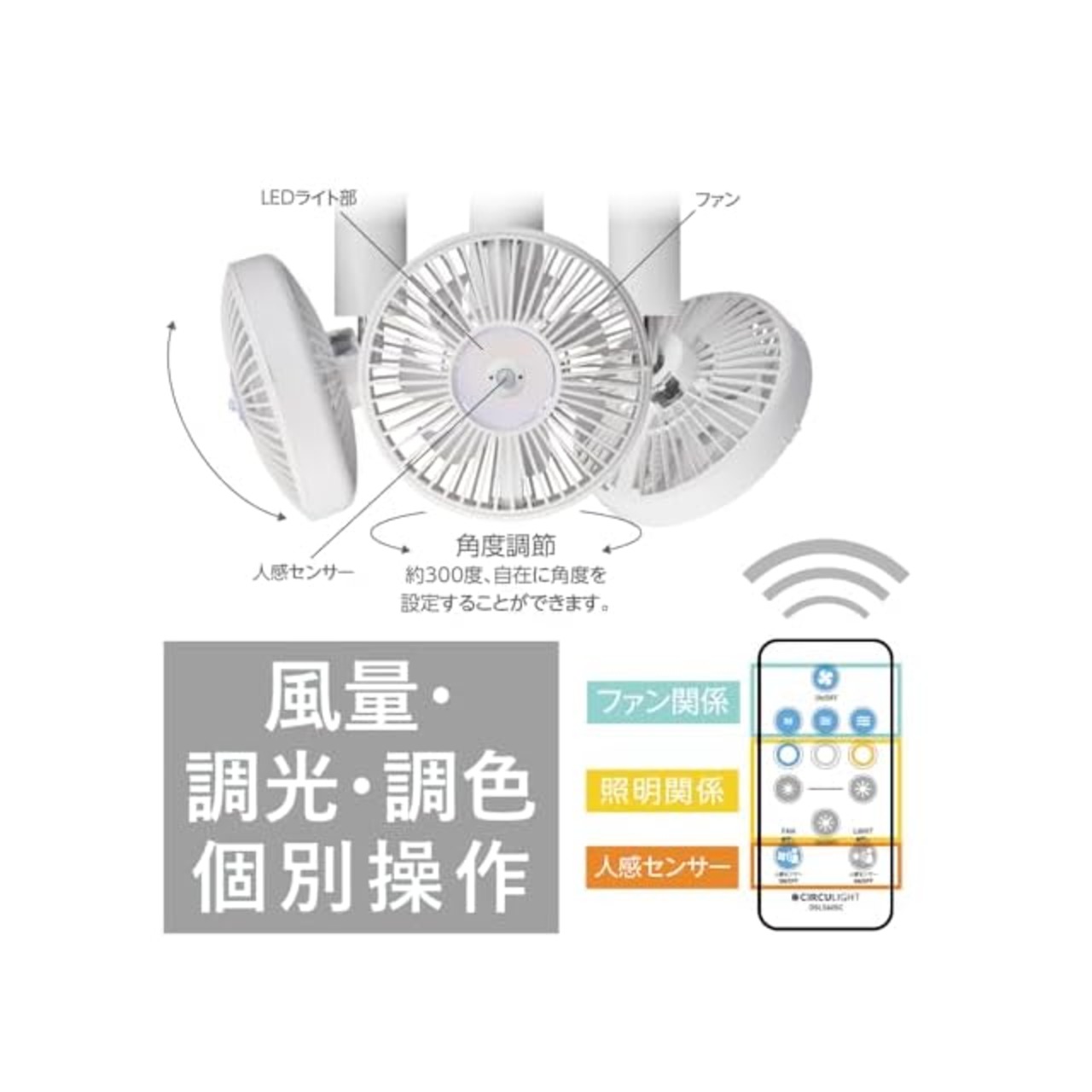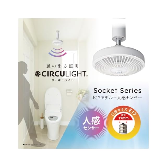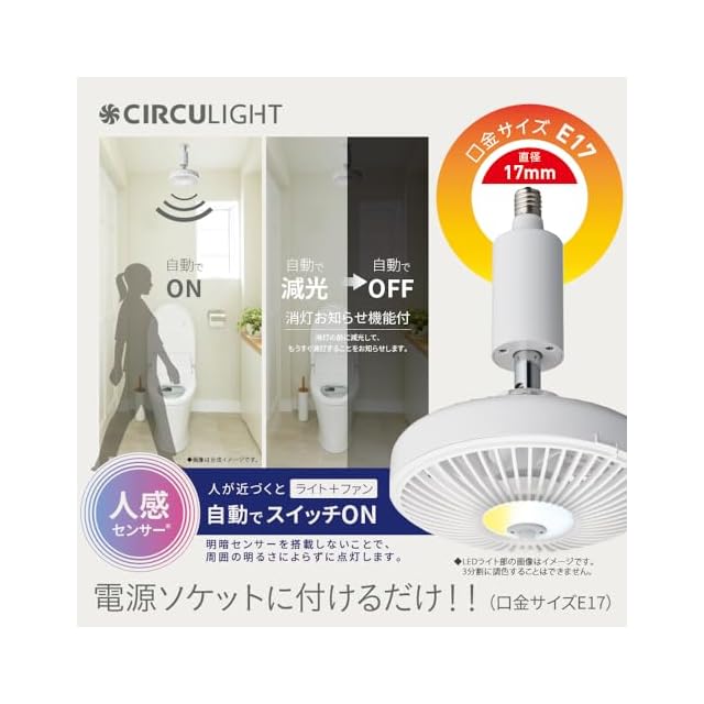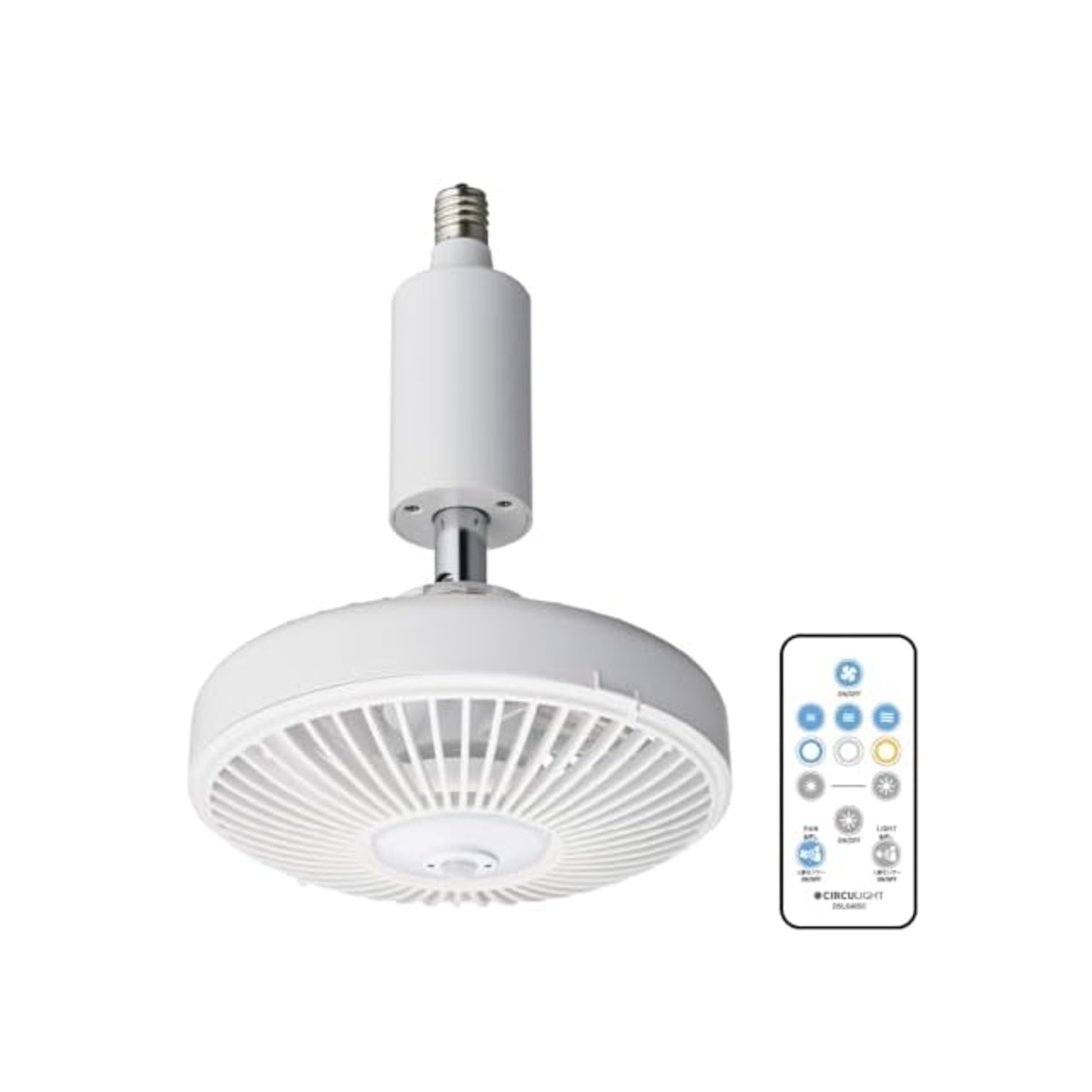 商品名:【E17電球ソケットモデル】 ドウシシャ サーキュライト ソケットシリーズ E17モデル 調色3段階 調光2段階 風量3段階 40W相当 人感センサー機能付き リモコン付き