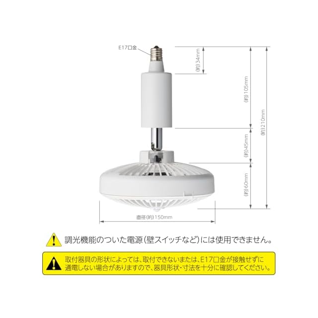 工具不要、かんたん取り付け。口金E17の器具であれば、電球を取り付ける要領で簡単に取り付けできます。工具やネジも使う必要がありません。お手入れ簡単。ファンガードは簡単に外す事ができて掃除が簡単です。(羽根は外すことができません)