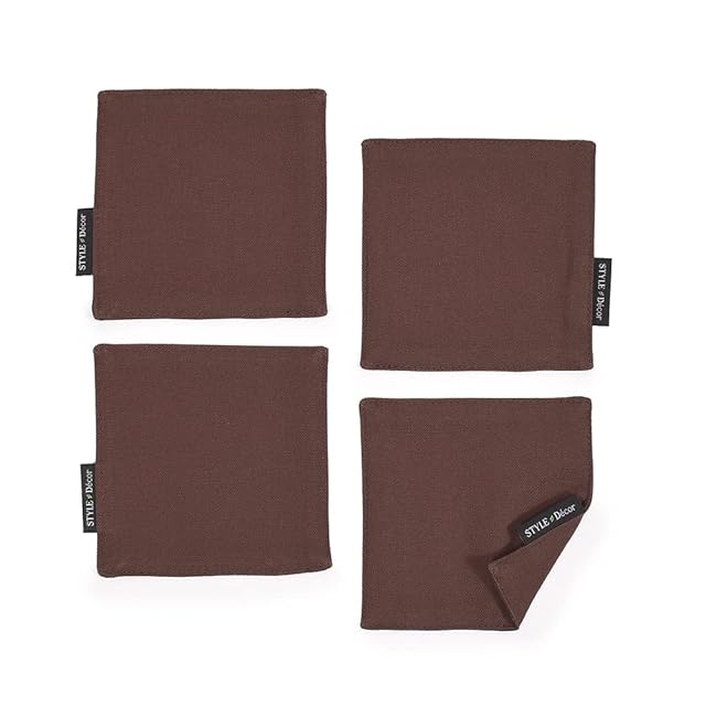 スタイルデコール(STYLE Decor) コースター リバーシブル おしゃれ 布 4枚セット 洗える 北欧 無地オックス・カフェブラウン W3003420