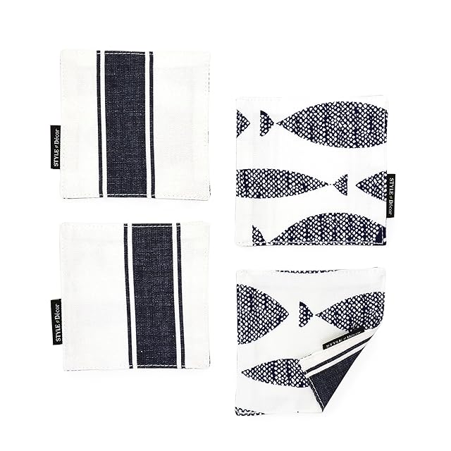 スタイルデコール(STYLE Decor) コースター リバーシブル 8枚セット ブルーフィッシュ 綿100% おしゃれ 布 洗える スタイルデコール W3000522