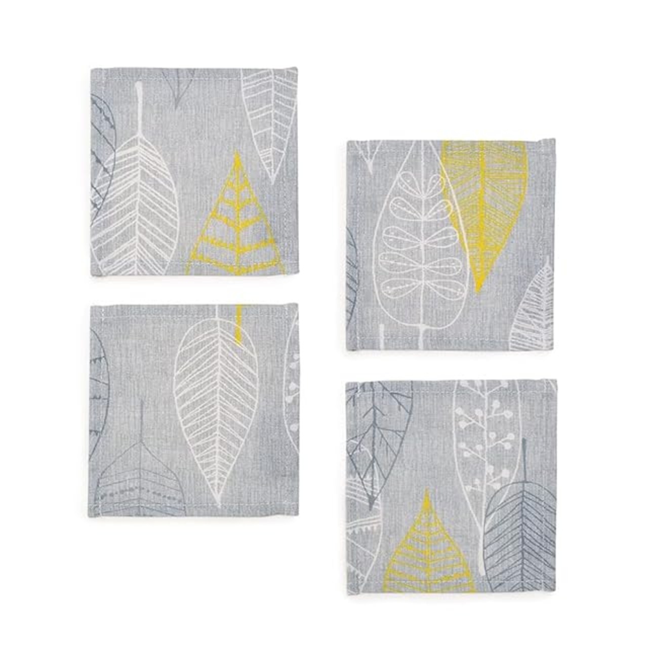 商品名:スタイルデコール(STYLE Decor) コースター 綿100% おしゃれ 布 4枚セット 洗える 北欧 グレー リーフ シンプル W3002300