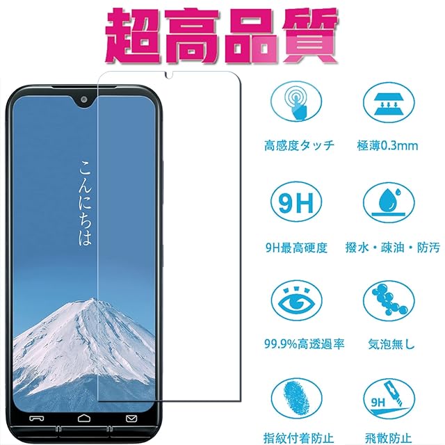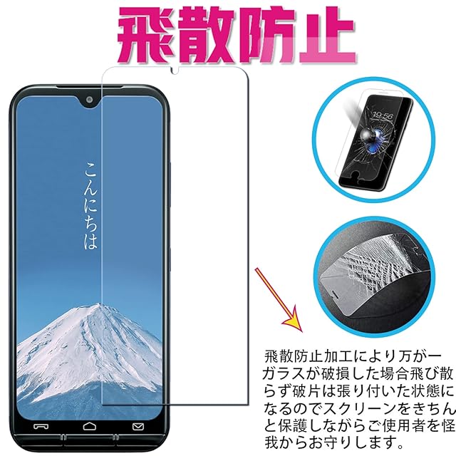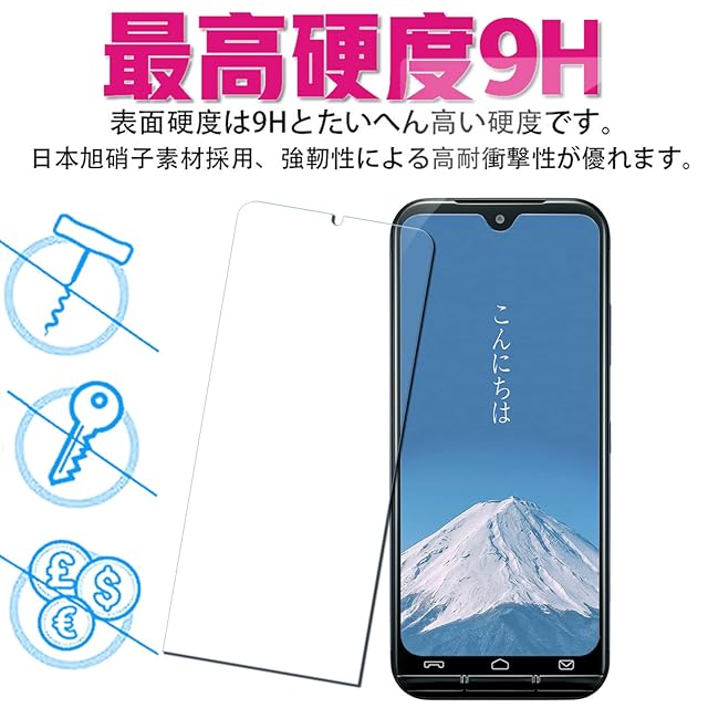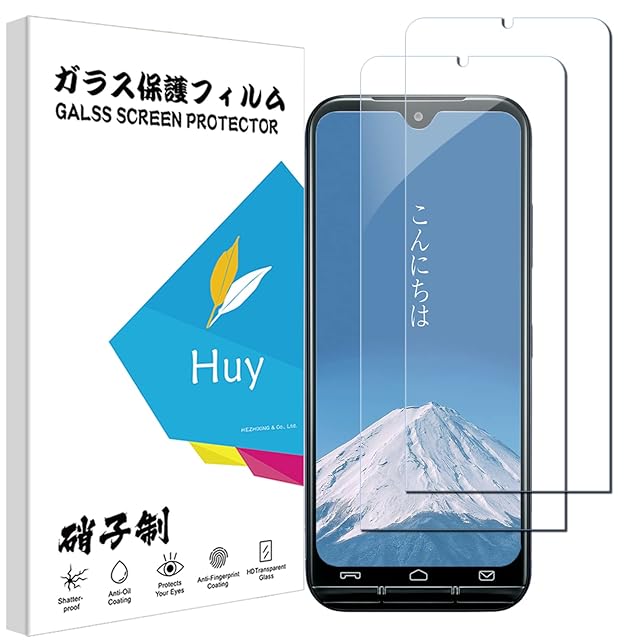 Huy あんしんスマホ KY-51B 用のガラスフイルム Kyocera ky 51b 用のフイルム【2枚セッ】 日本旭硝子製 強化ガラス 液晶 保護フィルム 貼り付け簡単 硬度9H 防指紋 透過率98.5%