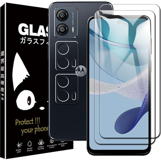 【2+2枚セット】moto g53j 5g フィルム + Motorola moto g53j 5G カメラフィルム 旭硝子素材採用 強化ガラス フィルム 硬度9H moto g53y 5G 保護フィルム 耐衝撃 撥油性 超耐久 耐指紋 飛散防止処理 moto g53j 5G / moto g53y 5G 用の ガラスフィルム + レンズ保護 フィルム 気泡ゼロ 高感度 高透過率