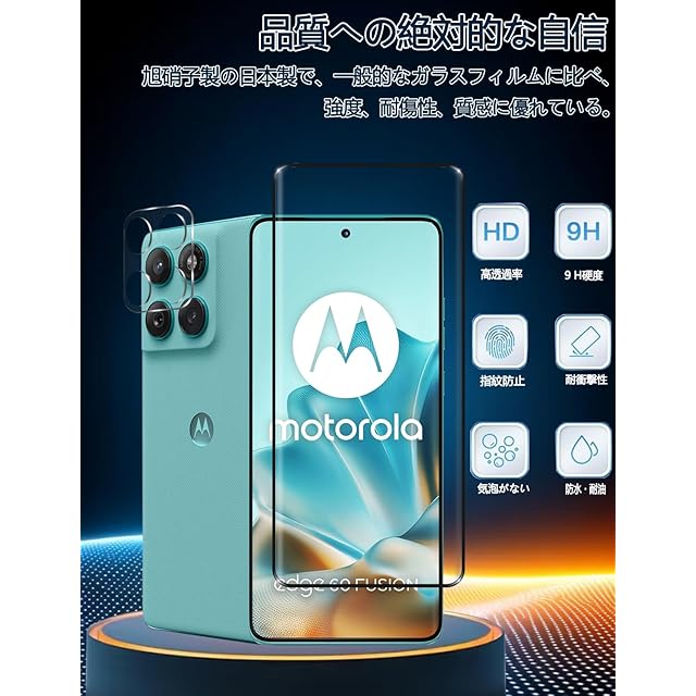 For Motorola EDGE 60 Fusion フィルム- 旭硝子仕様 motorola edge 60 pro/60s pro 用の保護フィルム 2枚 + カメラフィルム 2枚 強化ガラスフィルム 硬度9H 高 透過率 耐衝撃 飛散防止 傷防止 気泡ゼロ 耐指紋 自動吸着 撥油性