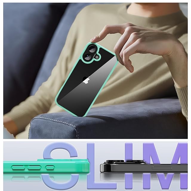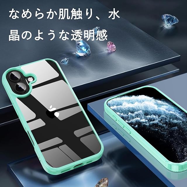 商品名:iPhone 17 用 ケース クリア カメラ保護 耐衝撃 エアガードコーナー 薄型 軽量 耐久性 黄変防止 滑り止め 3倍米軍MIL規格 アイフォン17対応(6.3インチ)スマホカバー EUMADOVE (グリーンの傷防止, iPhone 17)