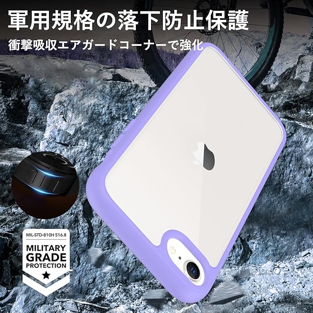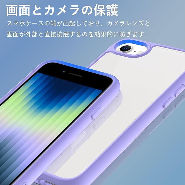 商品名:iPhoneSE 第3世代 第2世代 ケース 耐衝撃 PC iPhone8 ケース 人気 クリア 滑り止め iPhone7カバー 軽量 薄型 傷防止 マット感 黄ばみなし 米軍MIL規格 ワイアレス充電対応 EUMADOVE(紫色の傷防止, iPhone SE2022、iPhone SE2020、iPhone 8、iPhone 7)