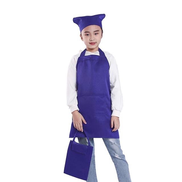 [BIGHAS] キッズ エプロン 3点セット 子供 三角巾 巾着バッグ 無地 男の子 女の子 色落ちしない ホコリが付きにくい (高学年用(140~160cm) L, サファイアブルー)