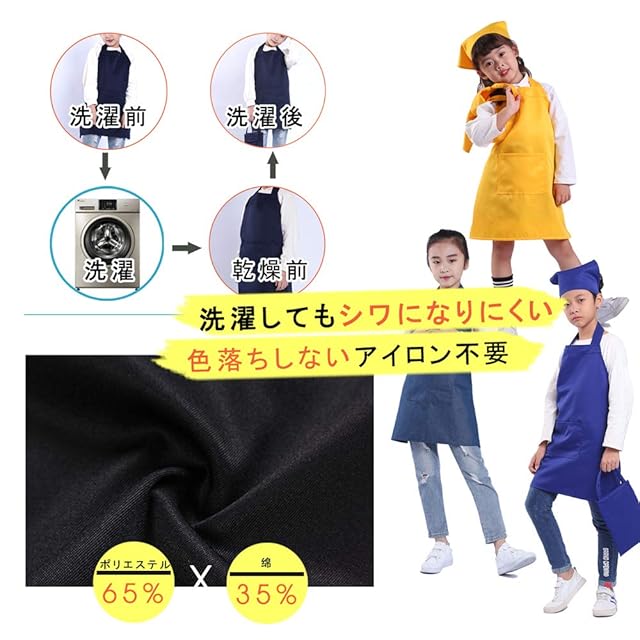 幼稚園、保育園、小学校、学校の行事、料理教室、図工、絵画、陶芸などいろんなシチュエーションに使用できるシンプルかつかわいキッズエプロンです。