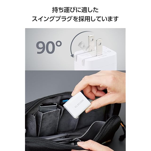 エレコム 充電器 Type-C USB-C 20W USB PD対応 1ポート PSE認証品 GaN採用 折りたたみ式プラグ ホワイト 【 iPhone16 15 等対応】 EC-AC6820WH