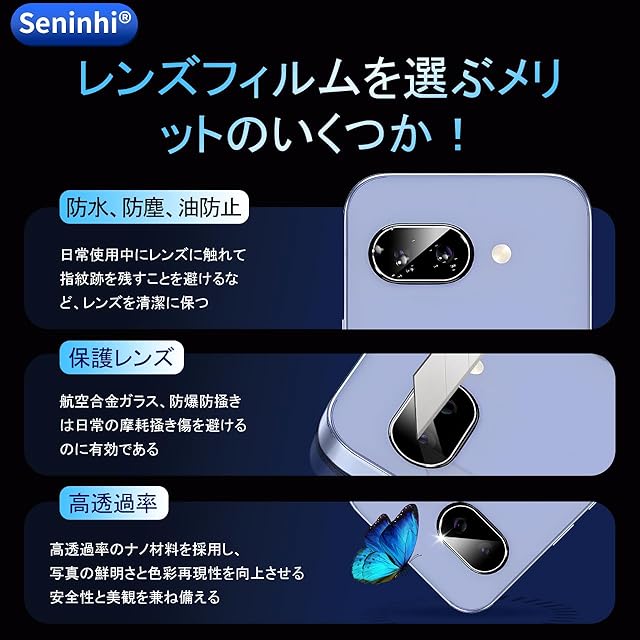 【Seninhi】Google Pixel 9A 保護フィルム最新登場!!!<br><b> <br><b> <br><b>について: Google Pixel 9A ガラスフィルム <br><b>【割れにくい強化素材】</b> <br>2倍強化テクノロジー" を採用している、4時間以上強化処理を経て、市販の強化ガラスと比べ2倍の強度を持ています。 <br><b>【飛散防止】</b> <br>万一割れてしまったとしてもガラスが飛び散らずにより安全に処理できます。 <br> <br><b>【鮮明の画面】</b> <br>装着しているのを忘れるほど、高い透過性があります。 デバイ <br>スが持つ高精細な画面の美しさはそのまま! 携帯電話本来の画面を楽しむことができます。 <br> <br><b>【滑り抜群】</b> <br>さらさら手触り! <br>優れたウィンドウディスプレイを持ち、指滑らかで、好感度で快適操作。 <br> <br><b>【国産旭硝子製】</b> <br>世界最先端のテクノロジーを誇る旭硝子社製のガラスフィルムです。 <br>鍵やナイフなど鋭利なもので切りつけても傷がつきにくいガラスフィルムです。 <br> <br><b>【指紋防止、コーディング耐油】</b> <br>汗や汚れがついても拭き取るだけ。簡単なメンテナンスで携帯電話の液晶を常に綺麗に保つことができます。 【カスタマーサービス】</b> <br>商品使用中、「通常使用で割れてしまった」や「空気が入ってしまった」などの場合。 <br>全ての品質上の問題とも弊社にご遠慮なく連絡ください。なお、対応の際に、お写真や現品にて不具合確認を取らせていただきます。 <br> <br><b>【ご連絡の方法】 <br>アカウントサービス内の「アカウントサービス」→「注文履歴」→「販売元」→「質問する」から、お気軽にお問合せ下さい。 <br>スムーズに問題を解決するため、不具合の写真とご注文番号を添付してご連絡をお願いいたします。 <br> <br> <b>◆Seninhiについて◆ <br>Seninhi——業界で先頭を切って簡単な張り付け方法を研究し、自動吸着、ガイド付きなどの風潮を助成しました。 <br> <br>長年にわたって、私たちはずっと堅守して初心を忘れず、高品質の製品を安定提供するために技術開発に絶えず挑戦し、 <br>事業資金の大半を商品開発とアップグレードに投入しております。 <br> 私たちは、お客様の要望に応え、十分満足いただけるような魅力ある <br>サービスと、安心で良質な製品の提供ができるよう努めます。