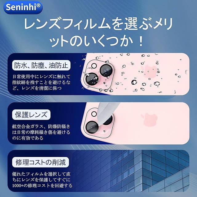 【Seninhi】iPhone15 plus 保護フィルム最新登場!!!<br><b> <br><b> <br><b>について: iPhone15 plus ガラスフィルム <br><b>【割れにくい強化素材】</b> <br>2倍強化テクノロジー" を採用している、4時間以上強化処理を経て、市販の強化ガラスと比べ2倍の強度を持ています。 <br><b>【飛散防止】</b> <br>万一割れてしまったとしてもガラスが飛び散らずにより安全に処理できます。 <br> <br><b>【鮮明の画面】</b> <br>装着しているのを忘れるほど、高い透過性があります。 デバイ <br>スが持つ高精細な画面の美しさはそのまま! 携帯電話本来の画面を楽しむことができます。 <br> <br><b>【滑り抜群】</b> <br>さらさら手触り! <br>優れたウィンドウディスプレイを持ち、指滑らかで、好感度で快適操作。 <br> <br><b>【国産旭硝子製】</b> <br>世界最先端のテクノロジーを誇る旭硝子社製のガラスフィルムです。 <br>鍵やナイフなど鋭利なもので切りつけても傷がつきにくいガラスフィルムです。 <br> <br><b>【指紋防止、コーディング耐油】</b> <br>汗や汚れがついても拭き取るだけ。簡単なメンテナンスで携帯電話の液晶を常に綺麗に保つことができます。 <br> <br><b>【パッケージ内容】</b> <br>強化ガラスフィルム ×2<br> 強化カメラフィルム ×2<br>ホコリ除去シート×4 <br>ウェットアルコールシート×4 <br>取扱説明書 ×1<br><br><b>【カスタマーサービス】</b> <br>商品使用中、「通常使用で割れてしまった」や「空気が入ってしまった」などの場合。 <br>全ての品質上の問題とも弊社にご遠慮なく連絡ください。なお、対応の際に、お写真や現品にて不具合確認を取らせていただきます。 <br> <br><b>【ご連絡の方法】 <br>アカウントサービス内の「アカウントサービス」→「注文履歴」→「販売元」→「質問する」から、お気軽にお問合せ下さい。 <br>スムーズに問題を解決するため、不具合の写真とご注文番号を添付してご連絡をお願いいたします。 <br> <br> <b>◆Seninhiについて◆ <br>Seninhi——業界で先頭を切って簡単な張り付け方法を研究し、自動吸着、ガイド付きなどの風潮を助成しました。 <br> <br>長年にわたって、私たちはずっと堅守して初心を忘れず、高品質の製品を安定提供するために技術開発に絶えず挑戦し、 <br>事業資金の大半を商品開発とアップグレードに投入しております。 <br> 私たちは、お客様の要望に応え、十分満足いただけるような魅力ある <br>サービスと、安心で良質な製品の提供ができるよう努めます。