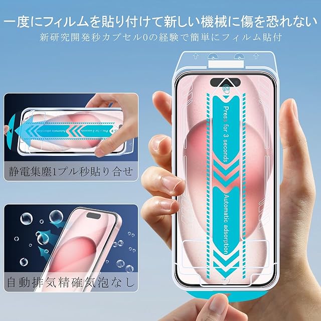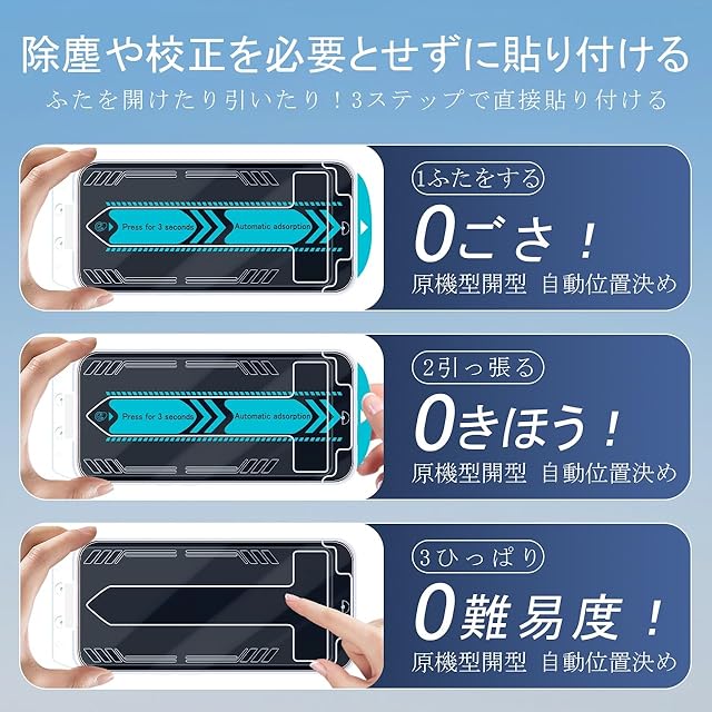 ★★★★★【ガイド枠付き】製品には専用の位置決め枠を付属したので、フィルムを貼り場所を外れる心配がありません。しかも自動吸着がもっと楽で便利です。更にこの位置決め枠は使い捨てではなく、何度も繰り返して使用可能です。